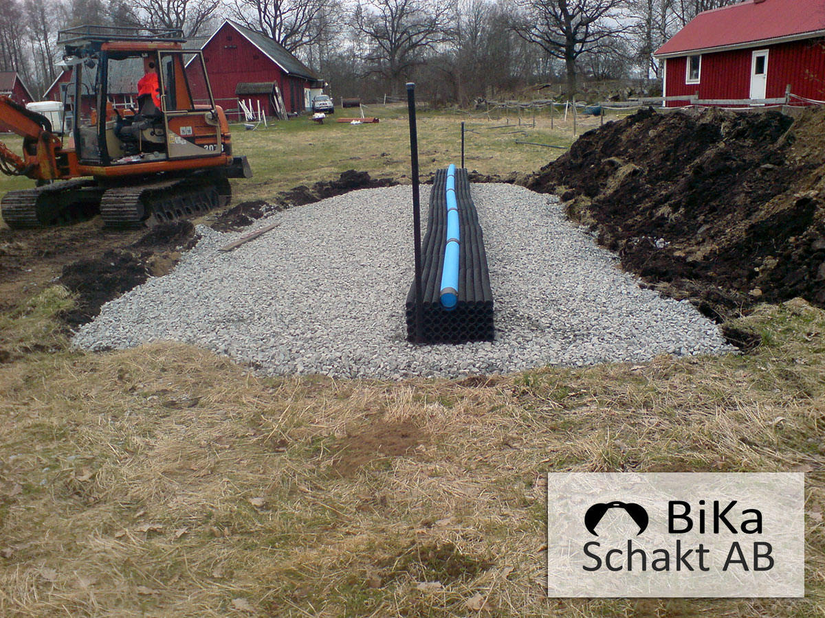 Nedan bilder från olika typer av entreprenadarbeten vi utfört. BiKa Schakt arbetar huvudsakligen med enskilda avlopp i Växjö med omnejd så de flesta bilderna är från olika varianter av infiltration, luftning och pumpbrunnar. Tryck för större bild.